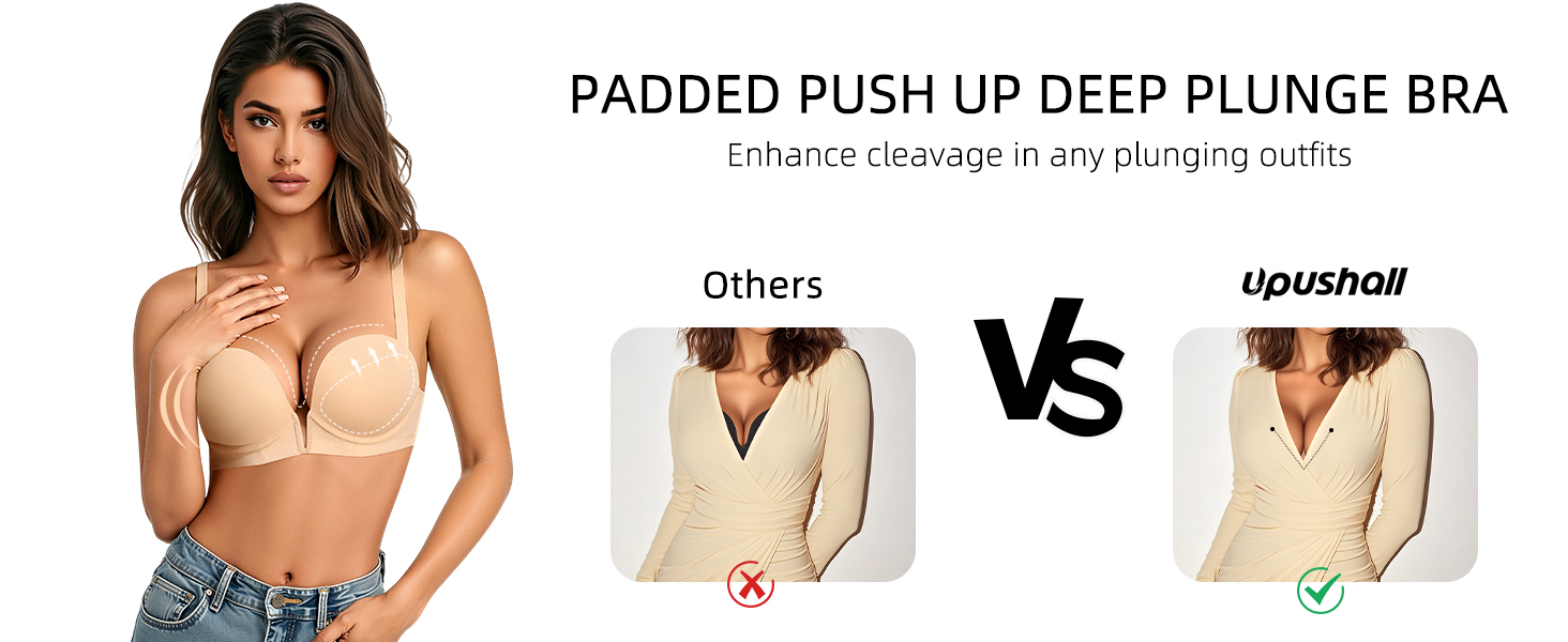 Deep V Plunge Push Up Padded Low Cut Convertible Straps Backless Bra
