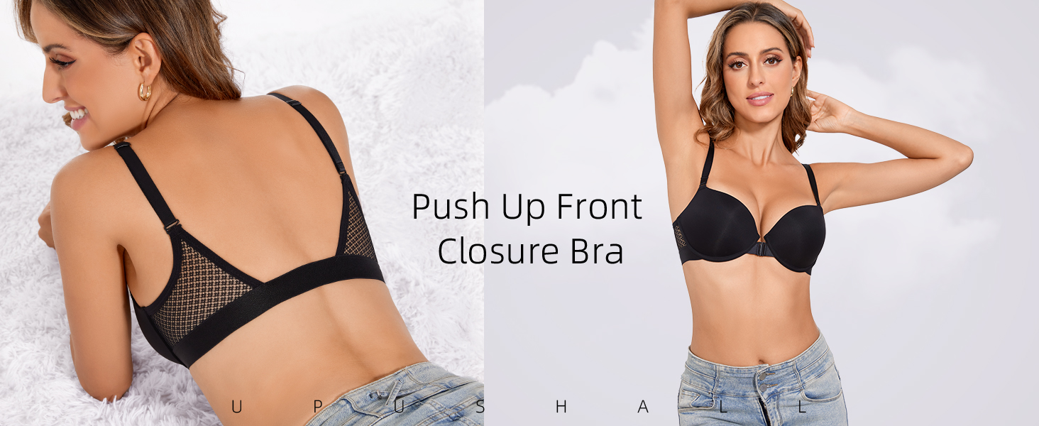 Front Closure Push Up Padded Mesh Back Underwire T-Shirt Bra