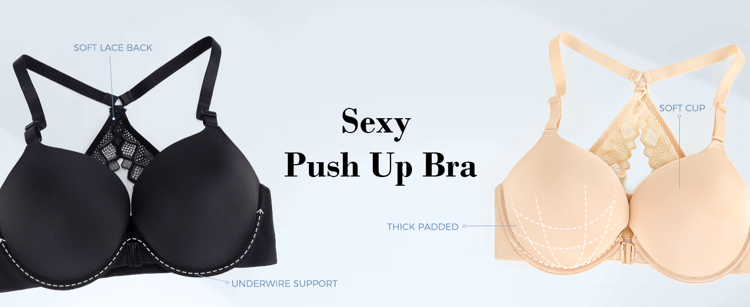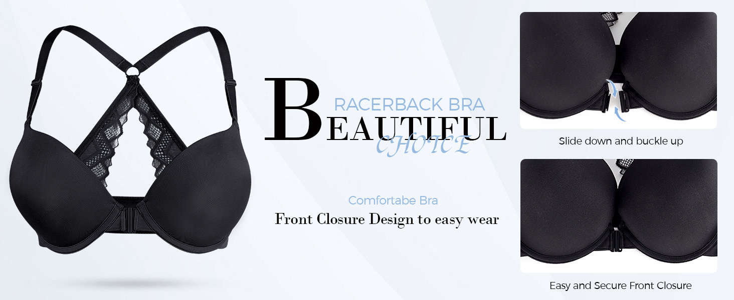 Front Closure Push Up Padded Seamless Lace Racerback Underwire Bra