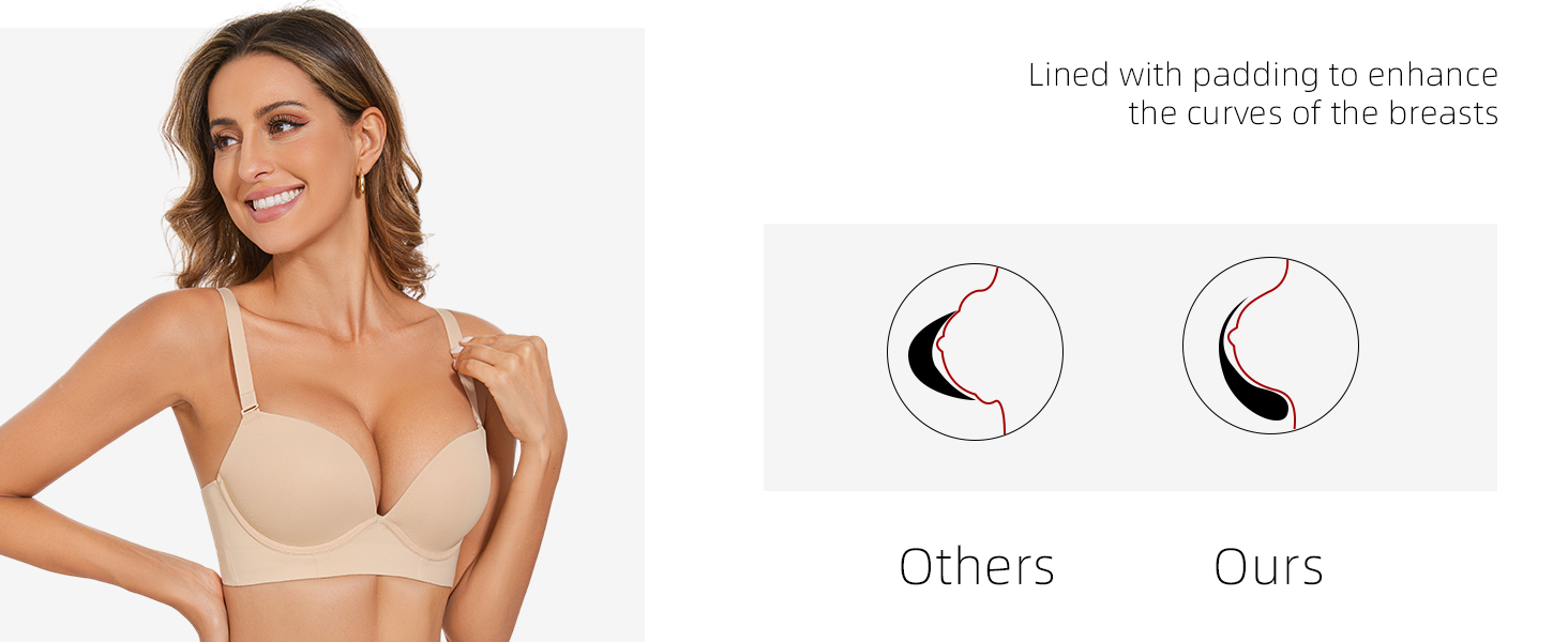 Padded Push Up Seamless Longline Smooth Underwire T-shirt Bra