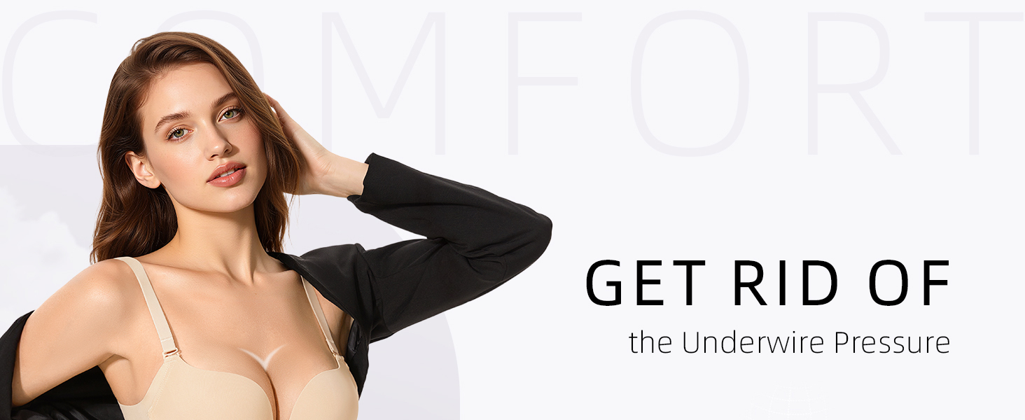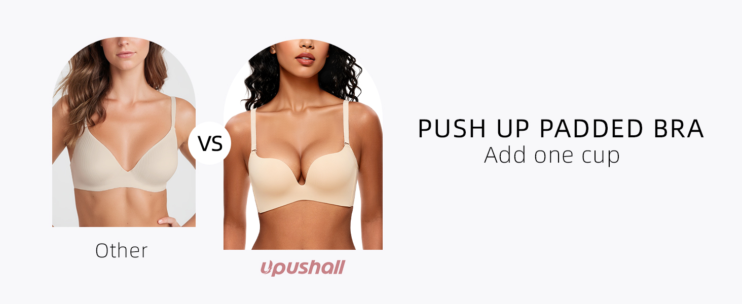 Wireless Push Up Bra Seamless Padded Plunge Comfort T-Shirt Bra